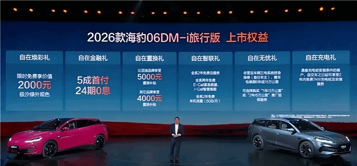 4月2日下午,比亚迪正式推出2026款海豹06GT与海豹06DM-i旅行版两款新车,两款车均标配第二代刀片电池和闪充技术,各推出4款配置车型,售价从11.19万元起,旨在解决电动车充电慢的痛点,同时满足性能与家用两种不同用车需求。