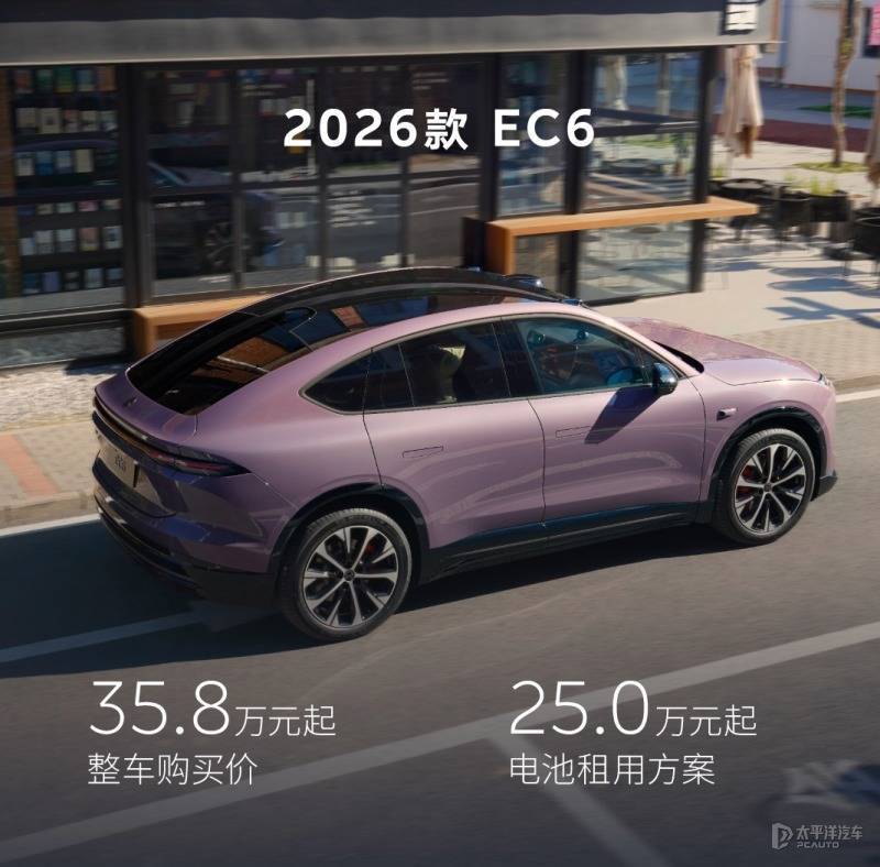 【太平洋汽车新车频道】4月2日,蔚来宣布2026款ES6、EC6正式上市。2026款蔚来ES6售价338,000元起,采用BaaS电池租用方式购买,售价230,000元起;2026款蔚来EC6售价358,000元起,采用BaaS电池租用方式购买,售价250,000元起。
