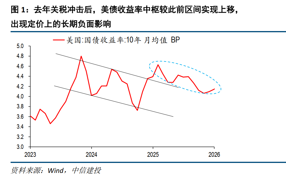 去年关税后,美债收益率中枢抬升且未再回落,呈现长期影响。本轮如何?